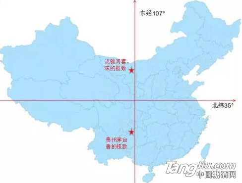 这一纵一横两条分割线,构成了中国的地理坐标图。同时,这也是中国白酒产业分布坐标图,由不同地域特色所决定的色香味格的白酒风骨密码即隐藏在这神奇的坐标图中。